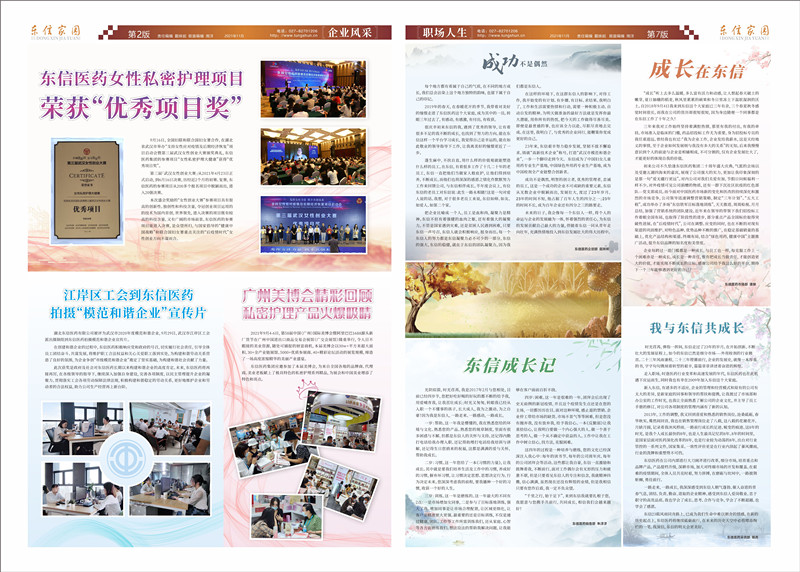 有人說,東信是奇妙的,成立23年來,發(fā)展有道,生產(chǎn)經(jīng)營和精神文明雙豐收,榮獲“最受歡迎婦科用藥”,“武漢市守合同重信用企業(yè)”,企業(yè)之歌--《舞臺(tái)、家園、夢》榮獲“湖北省優(yōu)秀品牌歌曲金獎(jiǎng)” 等榮譽(yù)稱號,接踵而來的榮譽(yù),東信總能讓人眼前一亮;