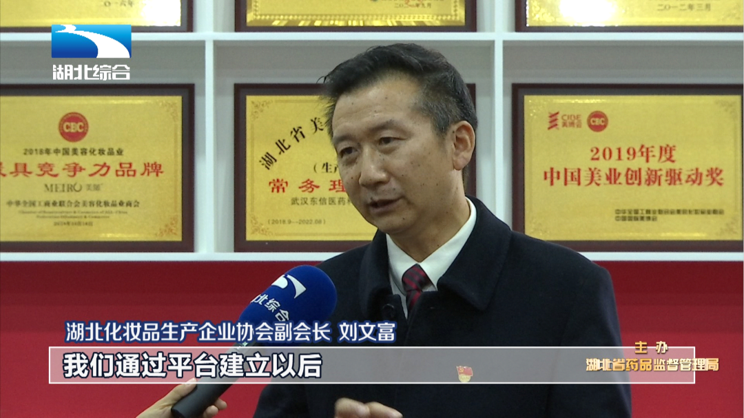節(jié)目播出前,武漢東信醫(yī)藥科技有限責(zé)任公司副總工程師、湖北化妝品生產(chǎn)企業(yè)協(xié)會副會長劉文富應(yīng)邀接受了湖北電視綜合頻道的采訪,為湖北省化妝品行業(yè)的創(chuàng)新發(fā)展建言獻(xiàn)策。