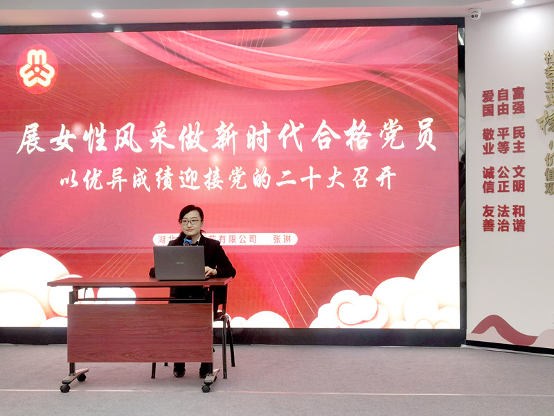 為迎接二十大勝利召開。10月13日下午,在江岸區(qū)新時代文明實(shí)踐中心,武漢市江岸區(qū)委宣傳部、武漢市江岸區(qū)婦聯(lián)、江岸區(qū)新時代文明實(shí)踐中心共同組織開展了“強(qiáng)國復(fù)興有我 奮進(jìn)英雄城市”群眾性主題宣講活動,湖北東信醫(yī)藥有限公司(下稱:東信醫(yī)藥)黨支部書記張琳受邀在宣講活動中做了《展女性風(fēng)采 做新時代合格黨員——以優(yōu)異成績迎接黨的二十大勝利召開》的報告。