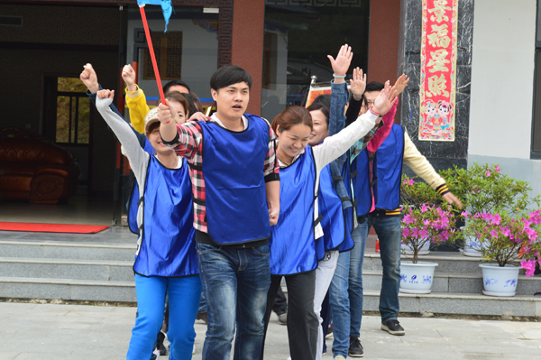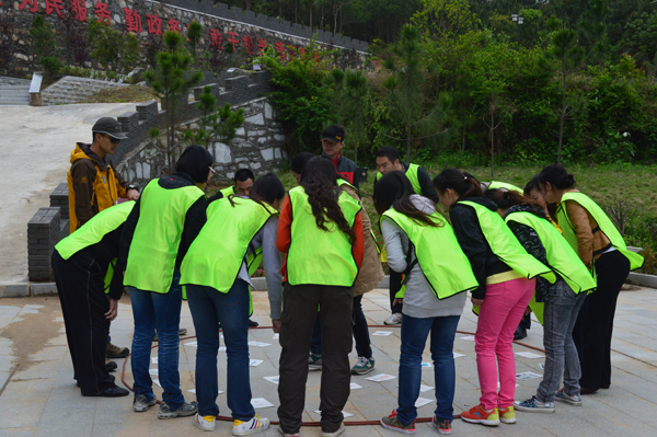 “只有團(tuán)隊(duì)的力量才能達(dá)成目標(biāo),創(chuàng)造奇跡!”負(fù)責(zé)此次拓展訓(xùn)練的教練用這樣一句話拉開了本次活動(dòng)的帷幕。教練首先通過全體參與“粘泡泡糖”活動(dòng),打破了大家之間的隔閡,建立相互幫助、相互協(xié)作的愉快氛圍。緊接著在教練的指導(dǎo)下,全體人員分成四個(gè)小組開展了起隊(duì)名、做隊(duì)旗、唱隊(duì)歌、研究團(tuán)隊(duì)造型等訓(xùn)練活動(dòng)。